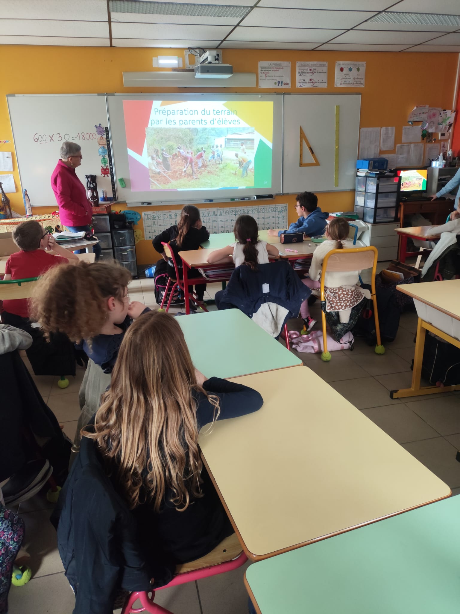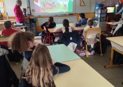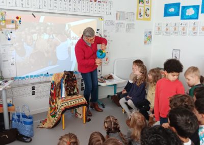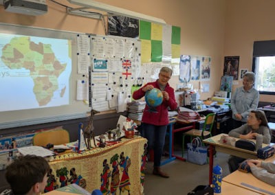 Mesdames Catherine Montagne et Mryvonne Lambinet, deux bénévoles de l’association « Le Sourire aux Mille Collines », sont venues rencontrer les élèves pour leur présenter les actions menées auprès de l’école de Nyabigoma, au Rwanda. Elles ont expliqué comment l’association soutient les enfants en finançant leurs repas et en portant cette année un beau projet : la construction d’une nouvelle cantine pour améliorer leurs conditions d’apprentissage.