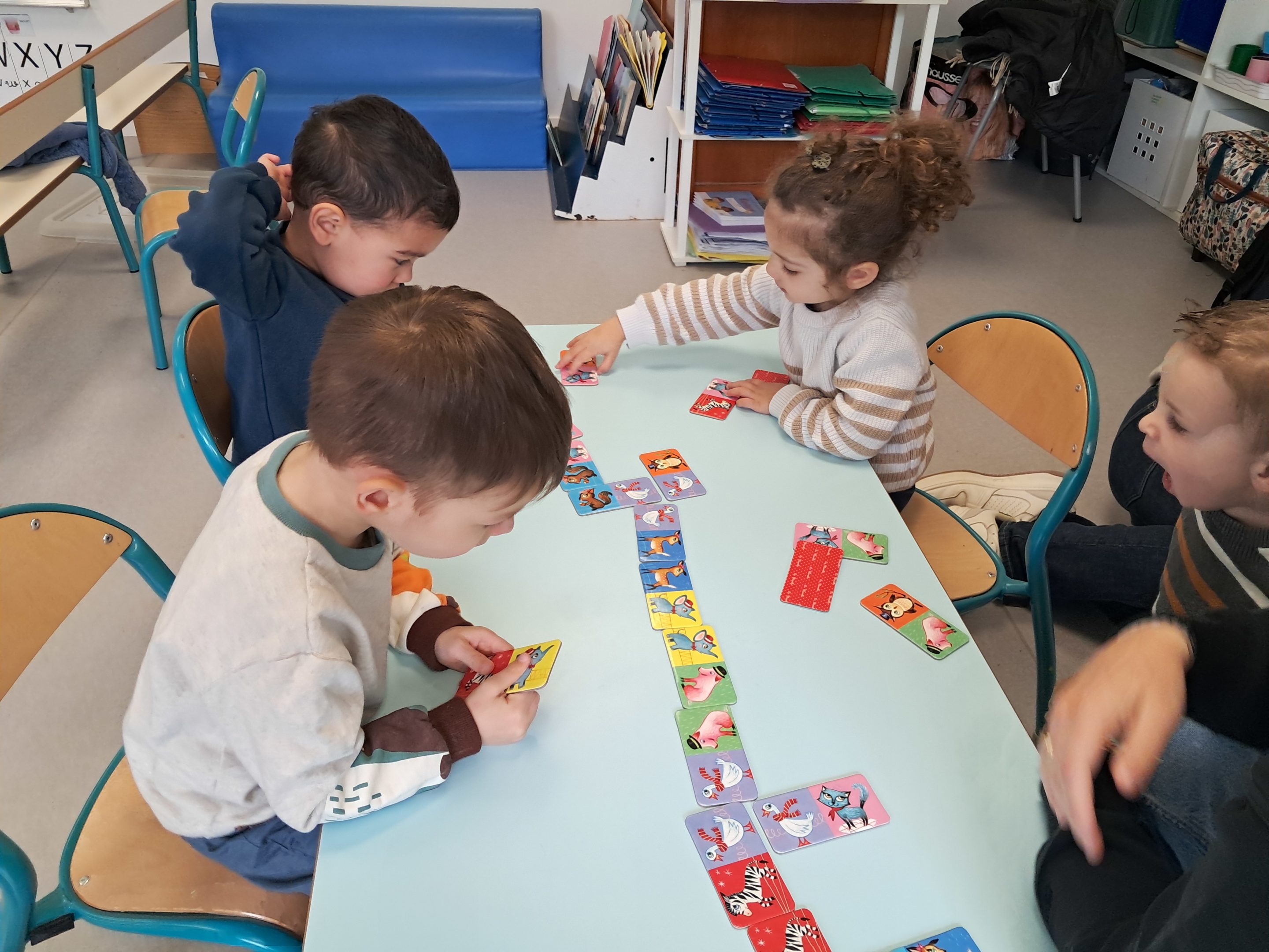 En quatrième période, les élèves de la classe TPS-PS-MS ont participé à un grand projet autour des jeux de société. Le but de ces ateliers est d’utiliser leurs acquis dans le contexte du jeu.