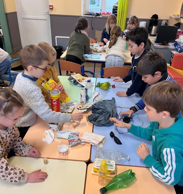 Les élèves ont trié différents déchets pour apprendre les bons gestes du quotidien, découvert les matières premières nécessaires à la fabrication des objets, compris, grâce à des jeux pédagogiques, le cycle de vie des matériaux et pris conscience de l’importance du recyclage pour protéger nos ressources épuisables et le vivant.